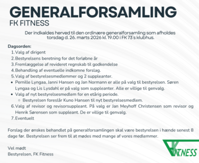 Kære alle, Så indkaldes der til den ordinære generalforsamling i FK Fitness – sæt kryds…